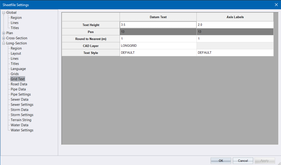 Enter the rounding factor in metres. An entry of 2 will add a grid label every 2 metres. |