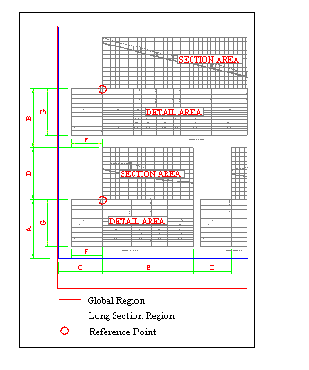 This page defines the layout of the long sections within the long section plotting region. It also defines the relationship of one long section to another.