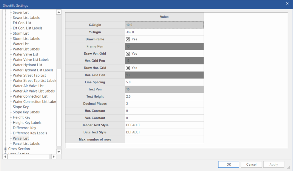 This page controls the drawing of a parcel schedule on the plan.