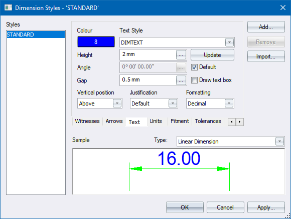 Displays a sample of what a dimension in the drawing would look like using the currently selected style. |