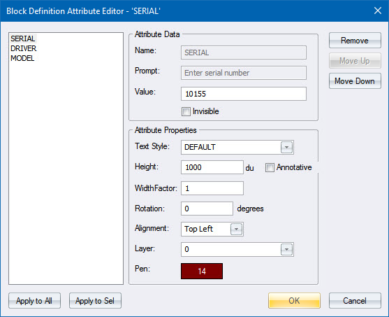 This option applies all the settings in the block attributes to all the blocks which have already been inserted into the drawing. |