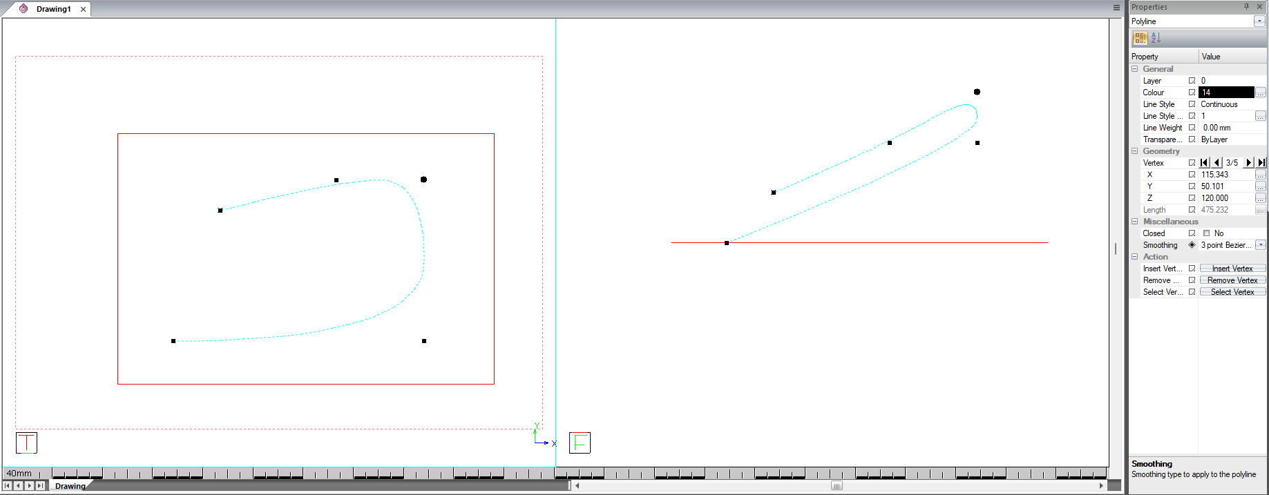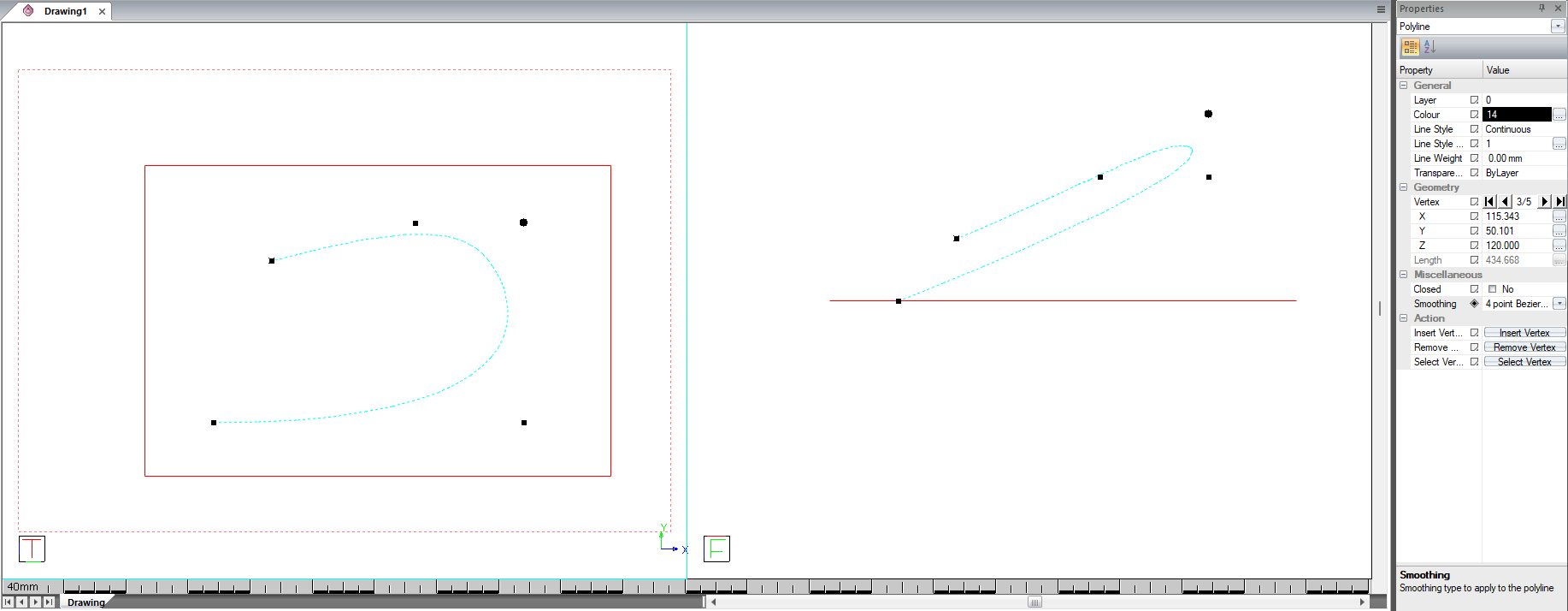 A polyline can be smoothed using the Properties Bar, such that the vertices become the control points of the quadratic or cubic Bezier spline.