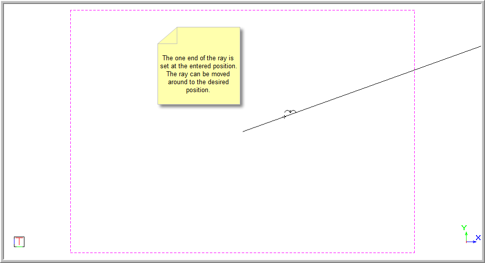 - Move to the desired point by moving the cursor, or using the jump or snap functions. Now click or press [Enter] over the desired start position. The ray is drawn in from the entered point and can be moved around.