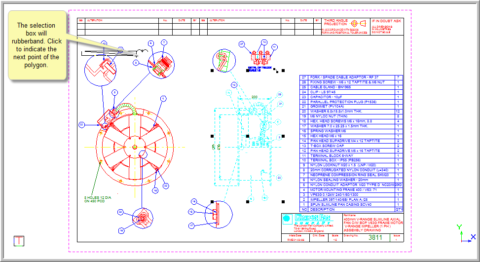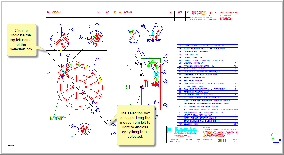- The selection box rubberbands. Drag the mouse from right to left. The box is indicated