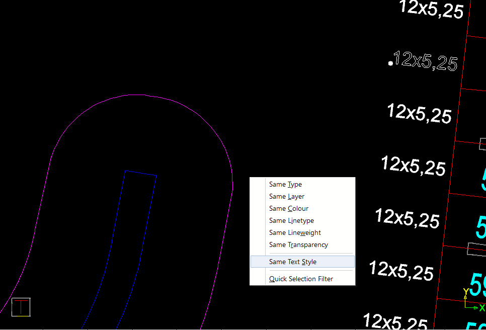 Select the Same Text Style option to select all text entities with the same text style.