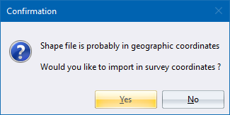 - If the program picks up that the shapefile coordinates are geographic coordinates, i.e. Lat-Long, it displays the following message.