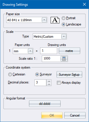 - The Drawing Settings display after the system has read the coordinates of the SHP file.