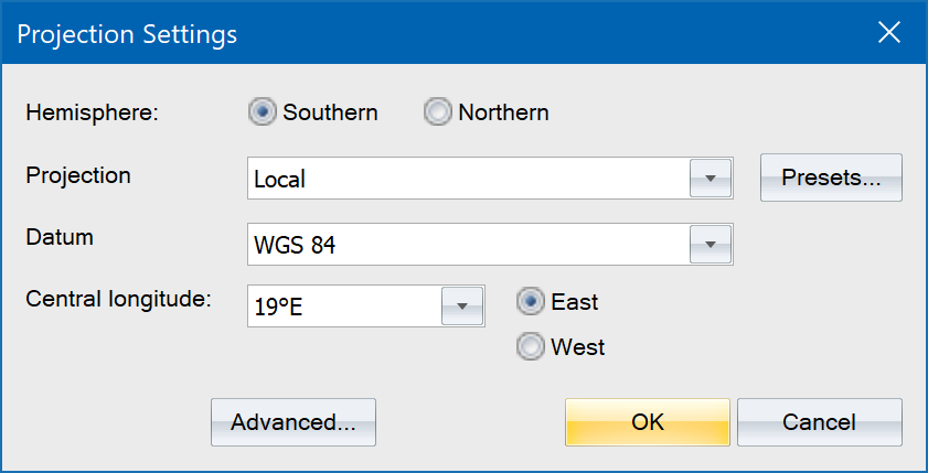 - If you click Yes you will be able to configure the projection settings.