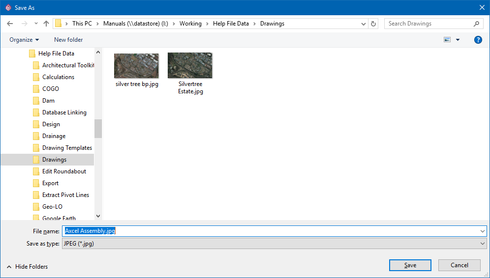 This function allows you to save a screenshot of the current drawing window in the following formats: