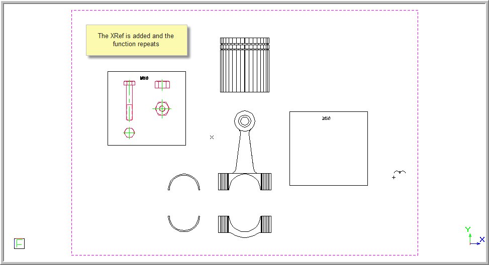 This function allows you to link an external drawing (External Reference or XRef) to the current drawing, at a specific insertion point.