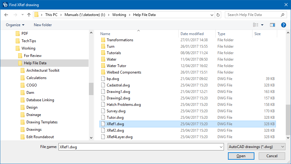 If more than one XRef has been loaded, select the required one from the XRef dropdown list.