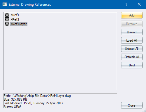 The XRef Manager displays. Click Add to display the file browser.