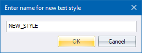 The new text style appears in the text styles list and is selected. The properties of the currently selected style are copied to the new style.