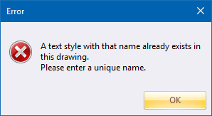 Click on a text style name in the list and then click OK to set the current text style.
