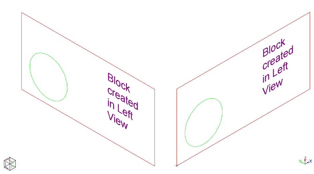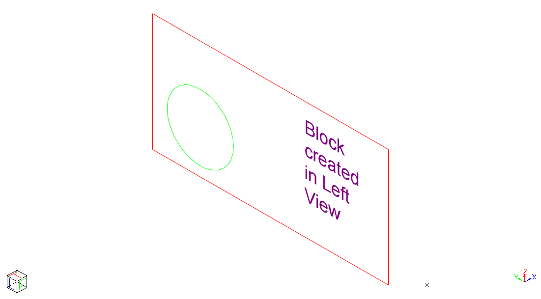 The entities from which the block will be created have been drawn in the Left View (note the view axis indicator).