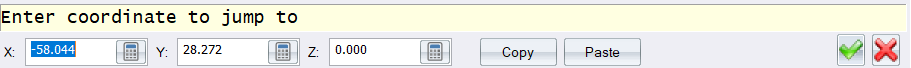 Clicking the “Paste” button will set the Coordinate Bar X/Y/Z to whatever coordinate text is currently in the clipboard. This can be used for example to copy coordinate text from a CSV file and paste it into the Coordinate Bar.