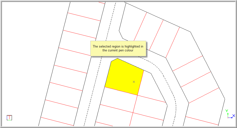 This function allows you to calculate the area and perimeter of a selected region using the perimeter boundary options. The area and perimeter are displayed in the current drawing units.