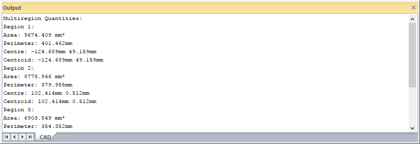 Select Accept to show the calculated area and perimeter in the Output Window.