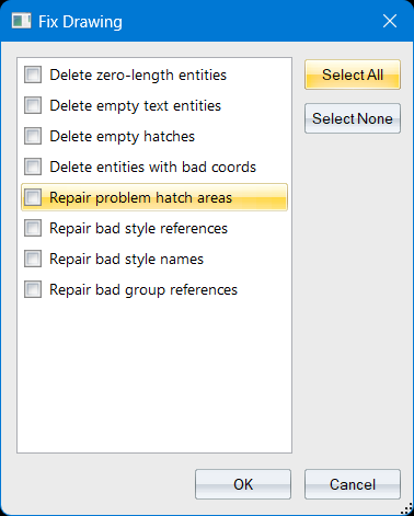 Click OK to run the Fix drawings function. If you have a very large drawing the function may take a few seconds to run.