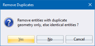 Click Yes if you would like to remove duplicate entities with the same start and end point but which may vary in colour, line style, layer etc.
