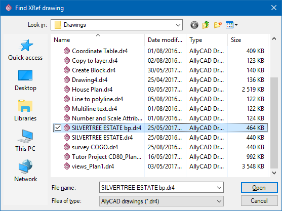 Click Add. The file browser displays and you can now browse for a DR4, DWG or DXF file. Select a drawing file and click Open.