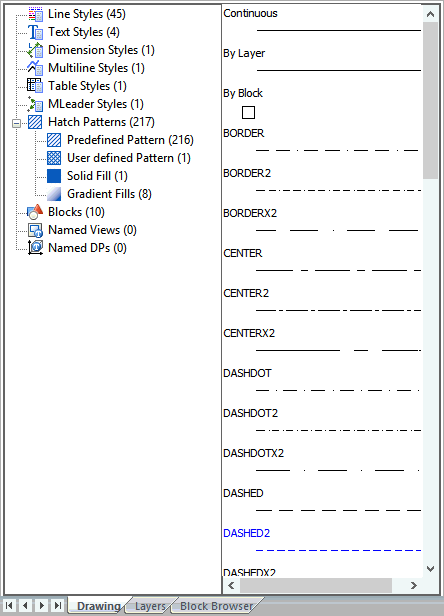 If a large number of blocks are listed in the right pane, you can use the Filter option to display only blocks whose names begin with the characters you enter in the Filter input box.