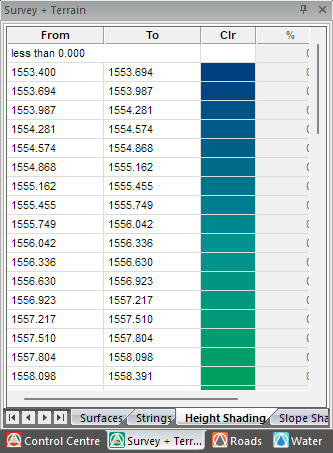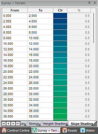 In the Control Centre, select the Survey + Terrain icon to open the Survey + Terrain Control Centre, which contains four tabs: