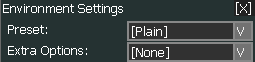 The Environment Settings control the appearance of the "background" in the Render View. These controls can be switche doff by clicking the X in the top right corner of the control. The control can be moved by clicking and dragging the title bar to its desired location.
