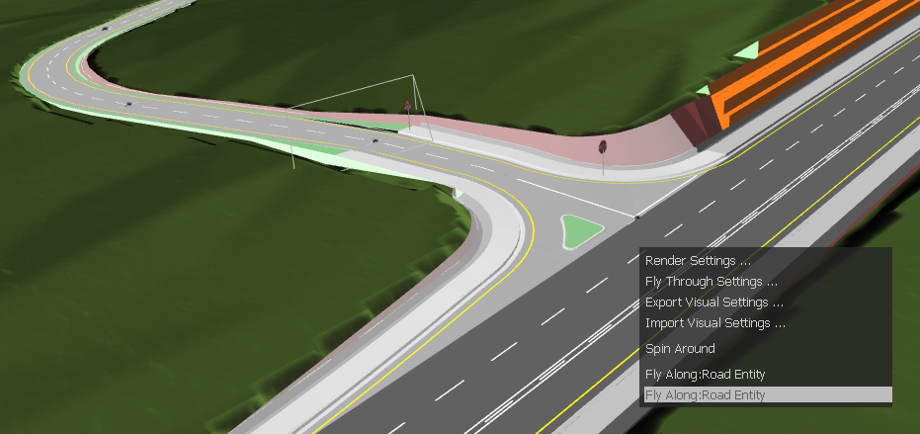 Besides the Circle Around operation, right-clicking in the scene also detects nearby Lines/Polylines/Arcs and Road Entities that could be used for a flythrough, and provides a Fly Along option as shown below.