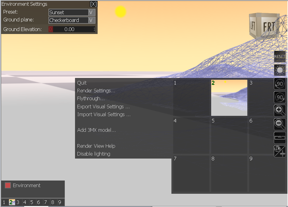 Select the Environment checkbox to display the Environment Settings panel in the top left corner of the Render View: