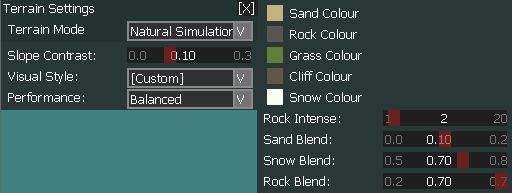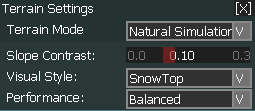 Under Natural Simulation mode provides a method to customise the terrain shading. All these tunings take effect immediately without any performance penalty. ![]() |