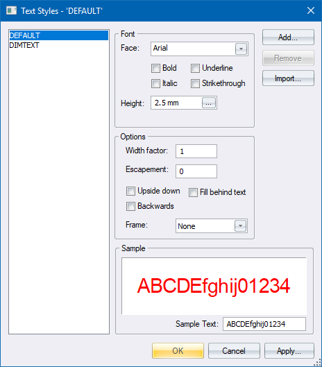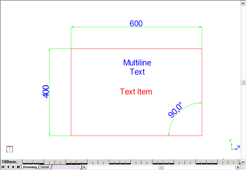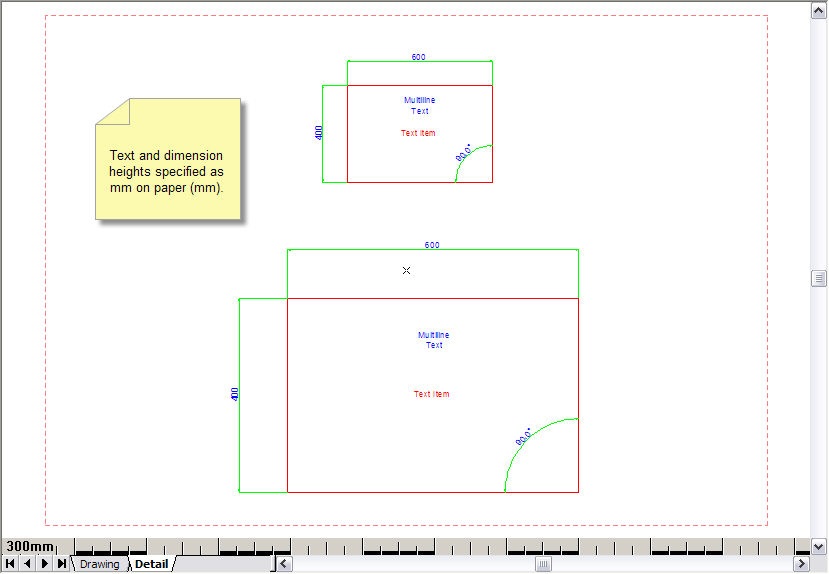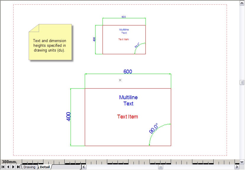The following drawing is exactly the same as above, except that the text height for both the text entity and the dimensions have been specified as 2.5mm.