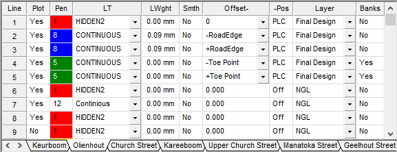 Change this to Yes to display bank lines from this line to the previous line working towards the centreline of the road. This allows you to display multiple sets of bank lines. |