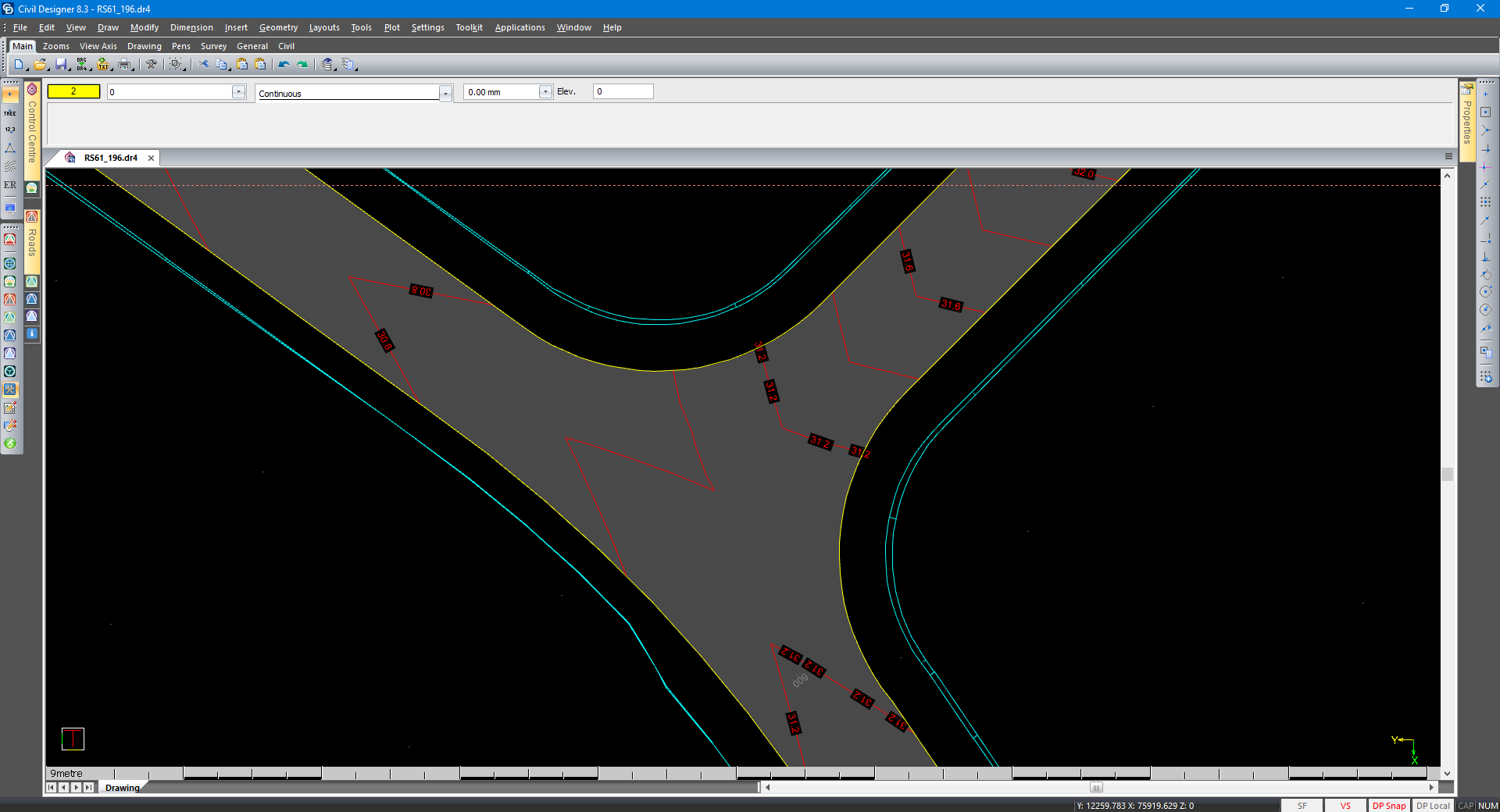 The Cyan line in the above image are the bank lines. The yellow lines are Plan Layout lines. |