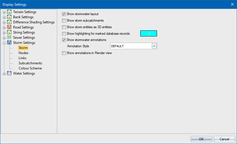 Select this checkbox to display the Storm subcatchment layout. This option is automatically selected when a graphical function is activated and the subcatchment display is switched off. |
