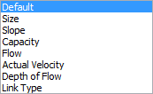 The link colour scheme will only be applied after an analysis of the network has been completed. The Size parameter will also only be applied to links with a size1 value. This means that drains, pumps and reservoirs will not be displayed in the size colour scheme.