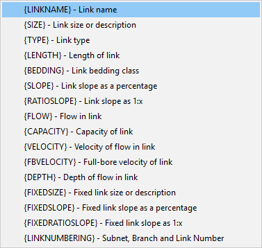 Right-click in the relevant cell to select from a menu. You can also define the number of decimals for numeric items. For example, an item {LENGTH.1} displays the length of the link to one decimal. The default display is three decimals.