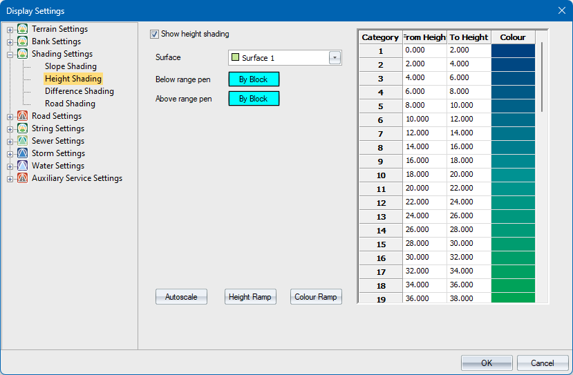 Select this checkbox to enable height shading display. |