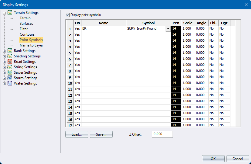 Display point symbols |