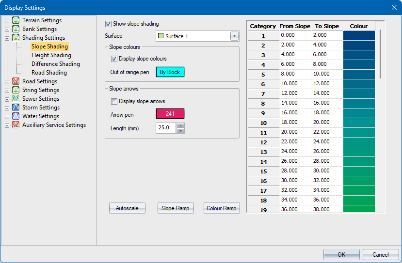Click this button to access the colour settings so you can specify a pen for the slope arrow. |