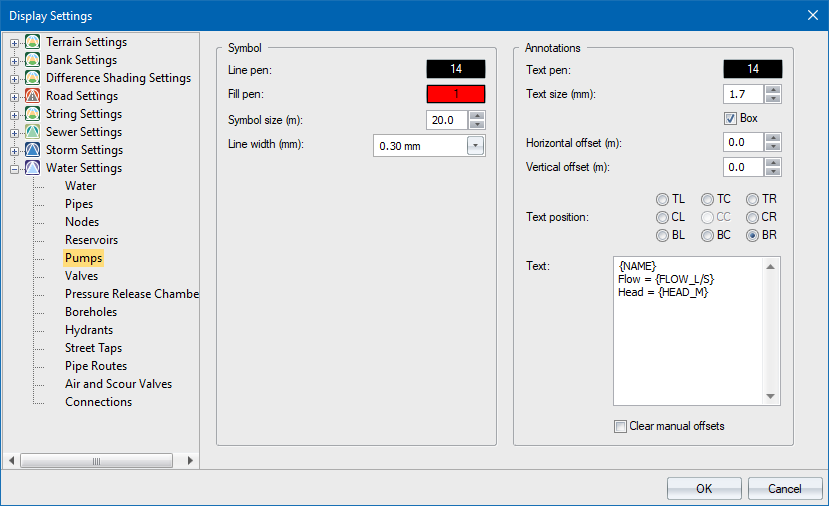 The pump annotations are displayed in the specified colour. To change the colour, click the button and select a colour from the Colour dialog. |