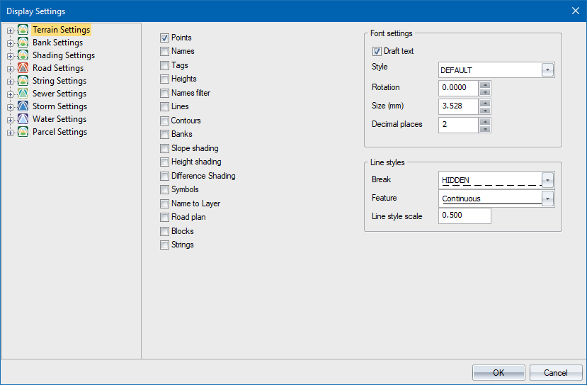 | Settings for cut and fill shading | |