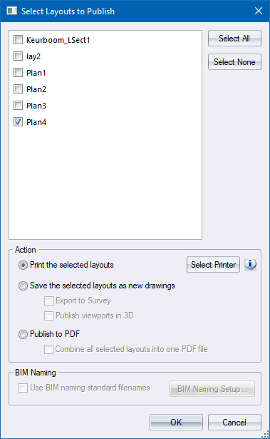 A list of all the layouts in the drawing. If the checkbox is selected, the layout will be published. |