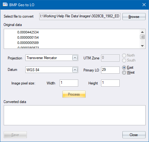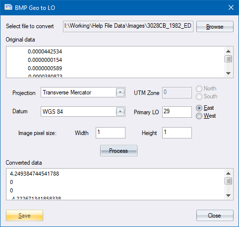Convert a geo-coordinated image reference file into a survey-coordinated image reference file.