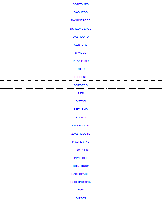 The following line styles are included in the EXSTRAS.LST linestyle file: