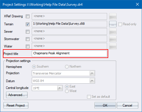 If you want the Project title to appear in the heading, add the string “{PROJNAME}” to the header text. For example, if the contents of the header file is: