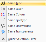 The Select Same function allows you to quickly select all entities that share a common general property with the currently selected entity.