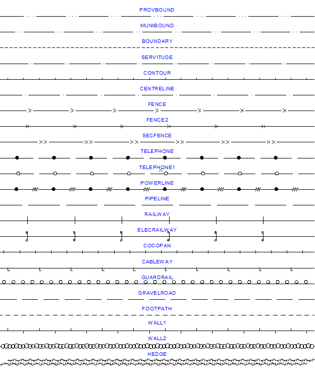 The following line styles are included in the TMH11.LST linestyle file: