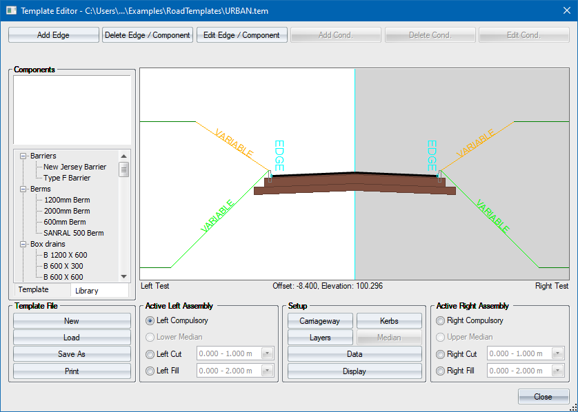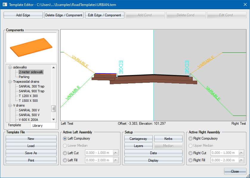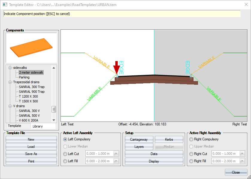 To add the sidewalk component to the template, simply click on the component name and drag it onto the template.
