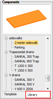 Now click on the Library tab of the components and scroll to the Sidewalks component group. Select the 2m sidewalk component.